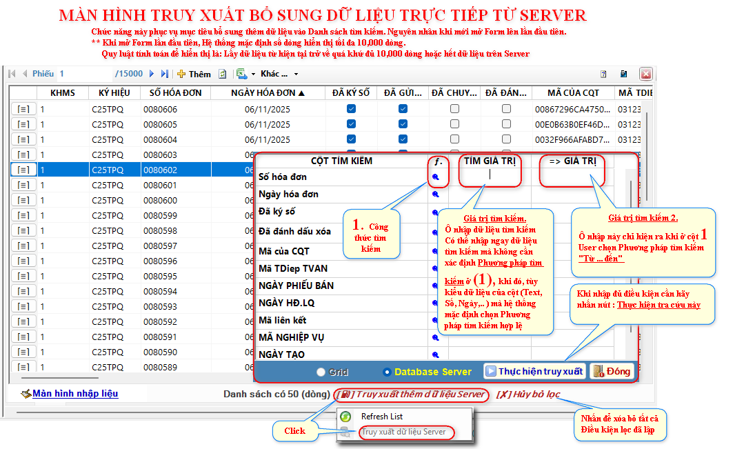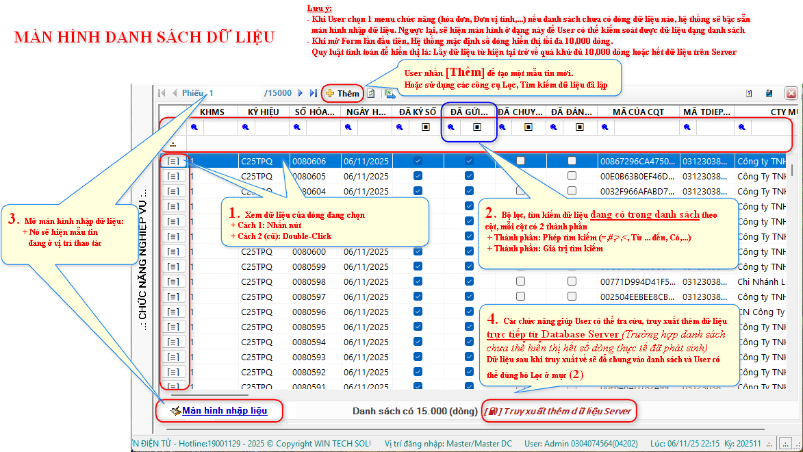 MÔ TẢ XỬ LÝ TRÊN MÀN HÌNH DANH SÁCH DỮ LIỆU